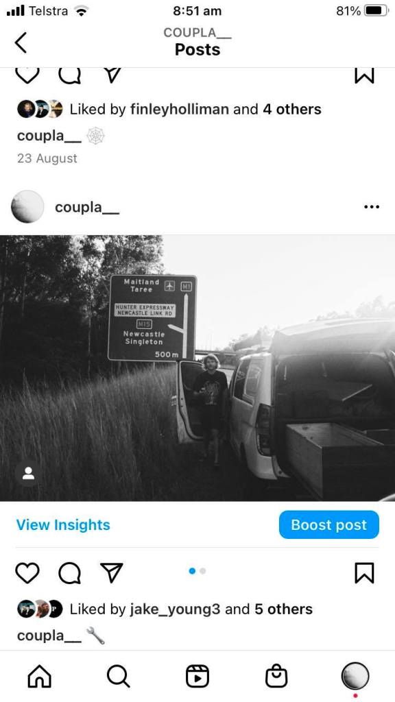 Throughout the artefacts initial stages, I was a little disappointed with the pages engagement. To fix this I started to change what I did with the content I upload to the page, with uploads no also including captions and tagging people that were relevant to specific uploads of content to the page. I made these iterations to the content to make it more relevant by providing context so that followers could be more drawn to the page. Also by tagging people, I was hopeful it would be shared and the help the artefact reach new audiences that my network may not have had.
