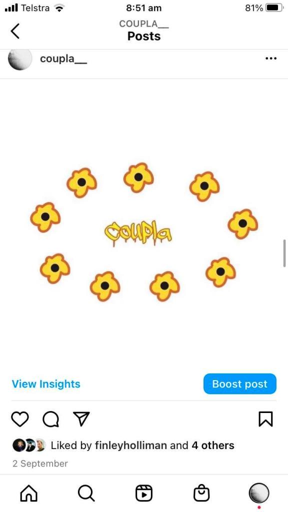 Coupla is a film based photography and graphic design page on Instagram. The pages content is centred around images and graphic design pieces that I have designed and taken myself. The page also includes a collaborative element that has been strictly applied to the photography section of the page, where I have teamed up with a close friend and fellow photographer to share their imagery on the page in hopes of giving it more depth and diversity.