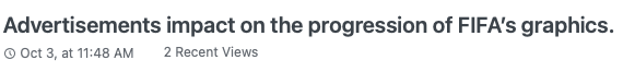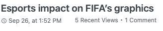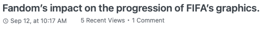 My aim when starting this artefact was to be able to create something of value to the games industry community. Although my it may not have appealed to a large majority within the community, I believe it provided great value to those who enjoy FIFA, Esports graphics and gamings progression over the recent decade. Regardless of low views I still think the value of this series can be found in the quality of research that each article provides and the work that I have put into it.