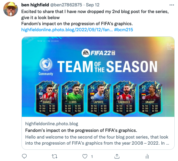 Throughout this semester of my study, I have been developing and curating a digital artefact (DA) with the intention for the information to provide value to the game media industry. This value will come in the form of a four post blog series based solely around the “Progression of FIFA’s graphics” between the years 2008 to 2022 that will be shared on my WordPress.